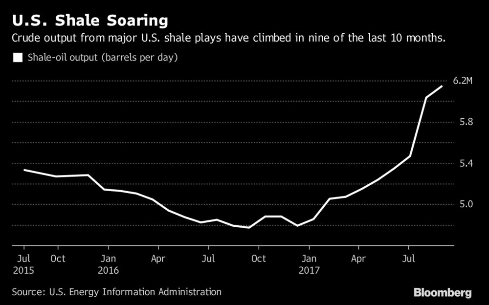 Oil output from major U.S. shale plays is poised to reach a fresh record next month, further complicating OPEC’s efforts to support prices.